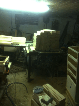 Pohľad do dielne a pripravený material .